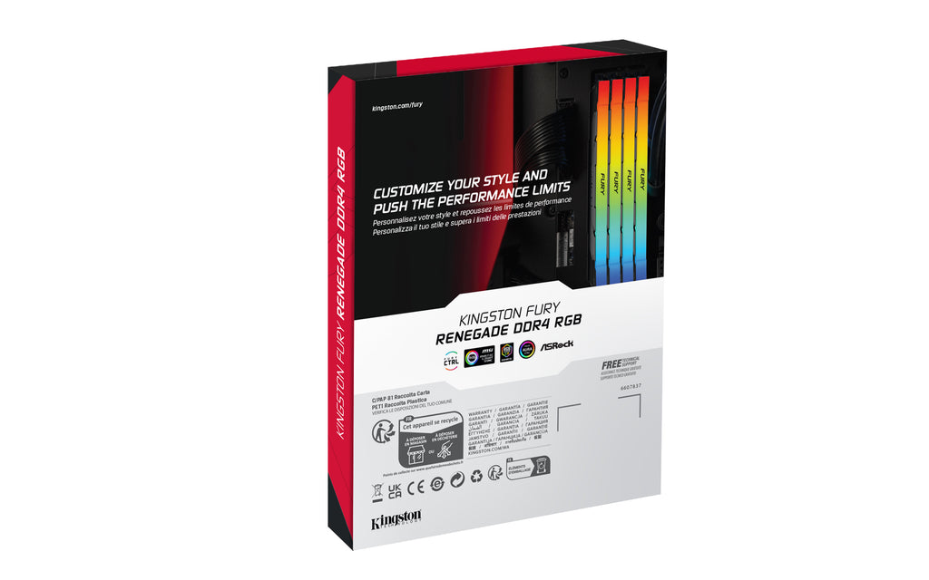 Kingston Technology FURY Renegade RGB. Komponent för: PC, Internminne: 32 GB, Minneslayout (moduler x storlek): 2 x 16 GB, Typ av internminne: DDR4, Minne klockhastighet: 1800 MHz, Minnets formfaktor: 288-pin DIMM, CAS-latens: 16