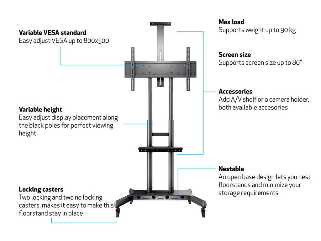Multibrackets 4627. Maxvikt: 90 kg, Minsta skärmstorlek: 139,7 cm (55"), Maximal skärmstorlek: 2,03 m (80"), Monteringsgränssnitt kompatibilitet (min): 200 x 200 mm, Monteringsgränssnitt kompatibilitet (max): 800 x 500 mm. Produktens färg: Svart