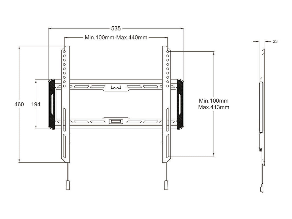 Multibrackets 1008. Maxvikt: 50 kg, Minsta skärmstorlek: 81,3 cm (32"), Maximal skärmstorlek: 165,1 cm (65"), Monteringsgränssnitt kompatibilitet (min): 200 x 200 mm, Monteringsgränssnitt kompatibilitet (max): 400 x 400 mm. Avstånd till väggen (max): 2,3 cm. Produktens färg: Svart