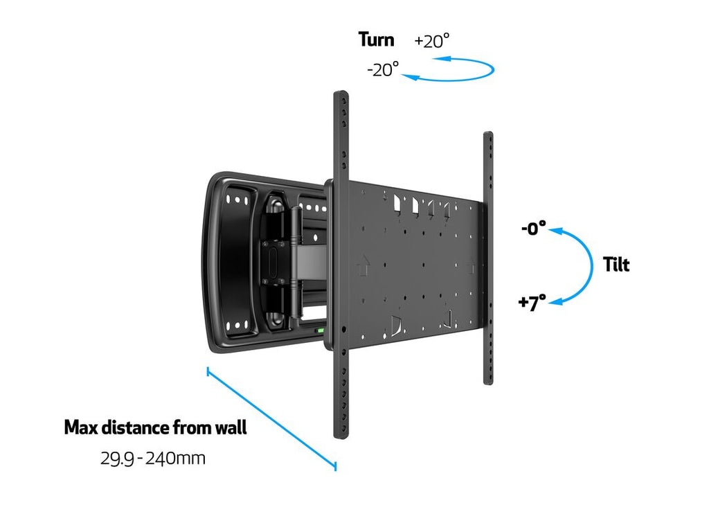 Multibrackets 4036. Maxvikt: 40 kg, Minsta skärmstorlek: 81,3 cm (32"), Maximal skärmstorlek: 165,1 cm (65"), Monteringsgränssnitt kompatibilitet (min): 100 x 100 mm, Monteringsgränssnitt kompatibilitet (max): 400 x 400 mm. Lutningsvinkel: 0 - 7°, Avstånd till väggen (min): 2,9 cm, Avstånd till väggen (max): 27 cm. Produktens färg: Svart
