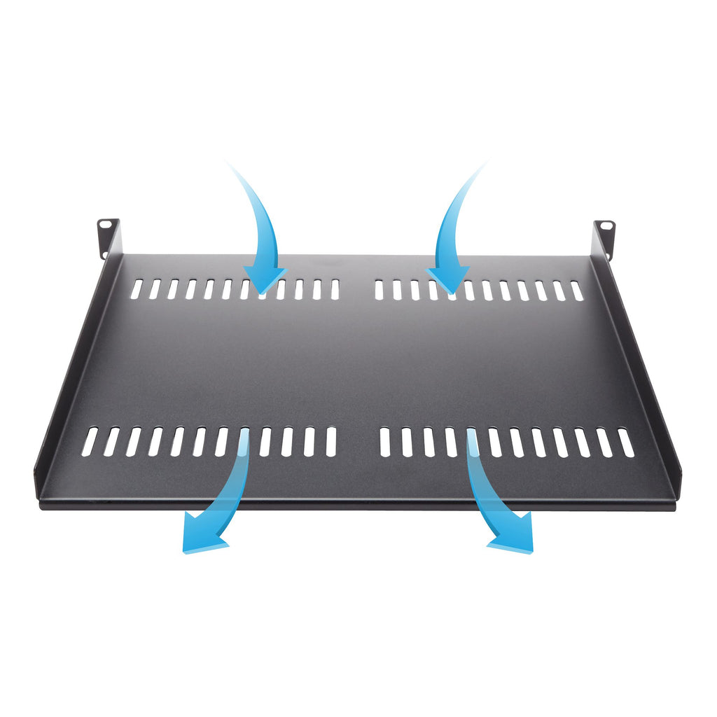 Med denna 1U rackhylla får du 40 cm platt förvaringsyta i ett EIA-310-kompatibelt serverrack eller -skåp. Hyllan är ventilerad för att förbättra luftflödet och sänka temperaturerna i racket.