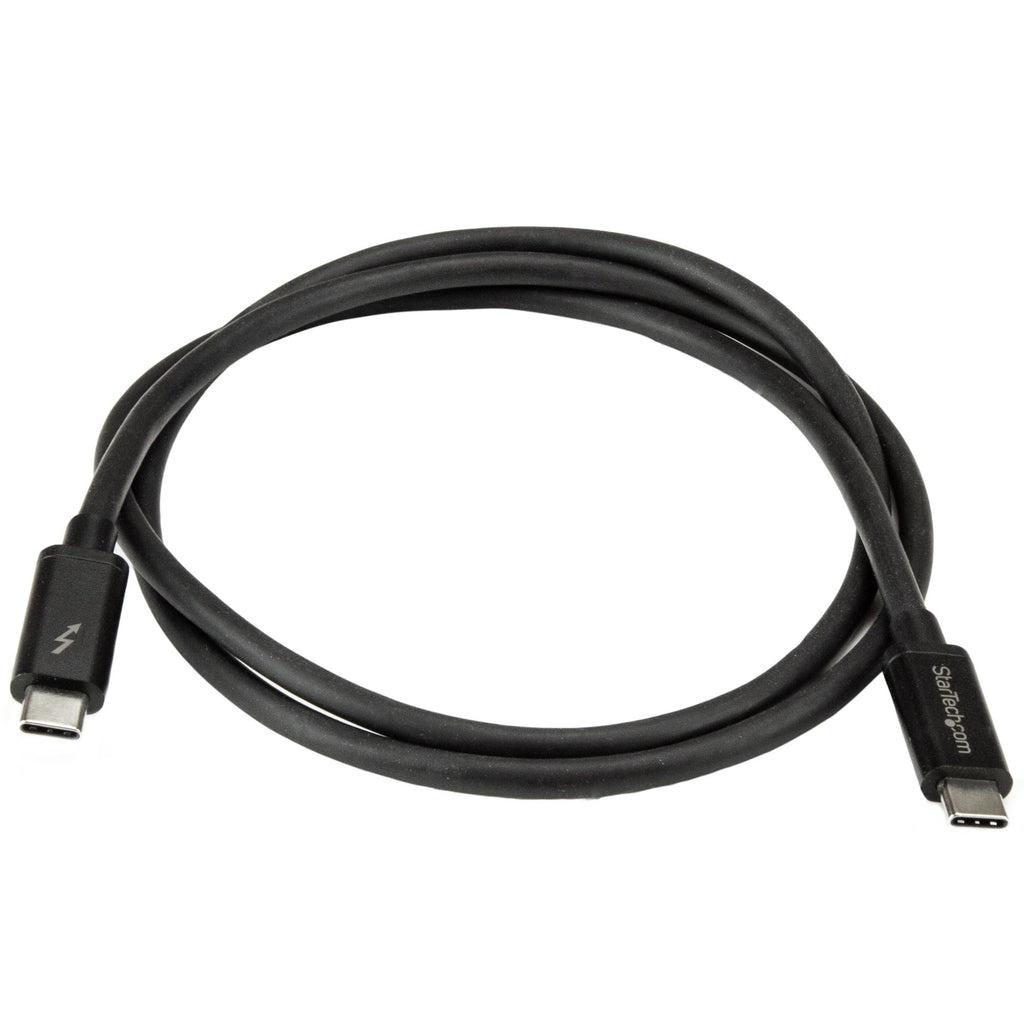 StarTech.com 1 m Thunderbolt 3-kabel, 20 Gbps, 100 W PD, 4K, Thunderbolt-certifierad, kompatibel med Thunderbolt 4/USB 3.2/DisplayPort. Anslutning 1: Hankoppling, Anslutning 2: Hankoppling, Kabellängd: 1 m. Produkter per ytterförpackning: 60 styck, Ytterförpackningens längd: 436 mm, Ytterförpackningens bredd: 298 mm. Vikt: 42 g. Förpackningens bredd: 125 mm, Låddjup: 225 mm, Höjd: 8 mm