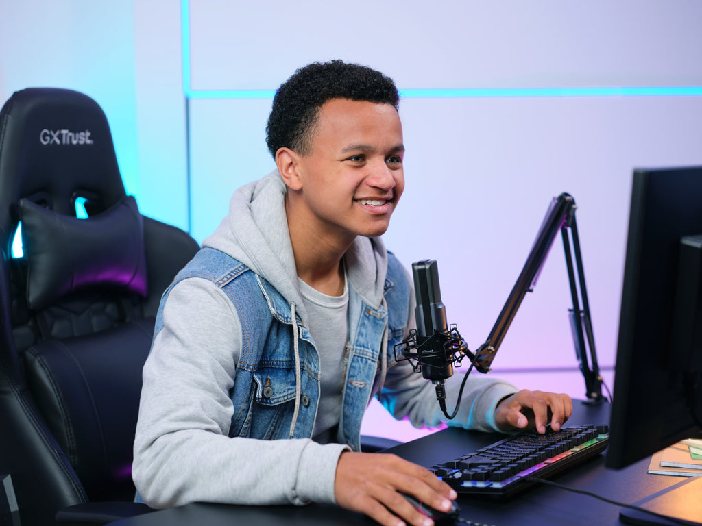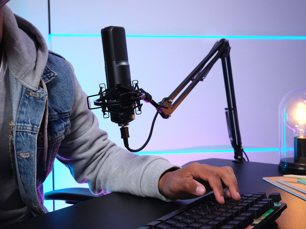 Trust GXT 253 Emita. Produkttyp: Stativ för radiomikrofoner, Bastyp: Skrivbordmonterad fot, Produktens färg: Svart. Bredd: 114 mm, Djup: 39 mm, Höjd (min): 41,7 cm. Förpackningens bredd: 270 mm, Låddjup: 380 mm, Höjd: 70 mm